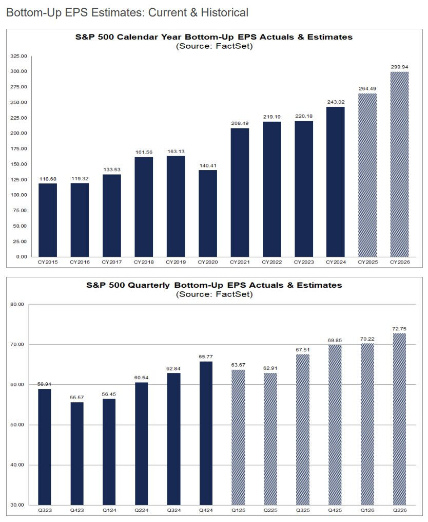 ファクトセットのS&P500のEPS予測は以下の通りです。